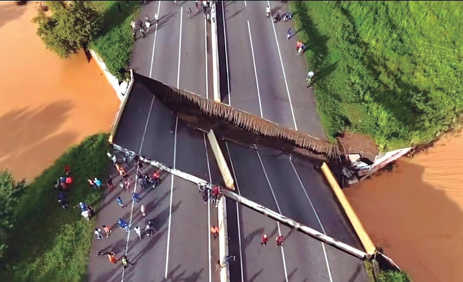 Antonio páez, a la altura del sector la trinidad, municipio ospino. los dos canales de la estructura se desplomaron, lo que llevó a la inmediata movilización de comisiones de protección Civil, Bomberos, policía nacional Bolivariana, guardia nacional y de la gobernación del estado portuguesa y al cierre del paso vehicular en el distribuidor la Flecha que conecta a los municipios Araure, turén, esteller y ospino. en yaracuy, las autoridades se mantienen alertas por inundaciones en algunas vías.