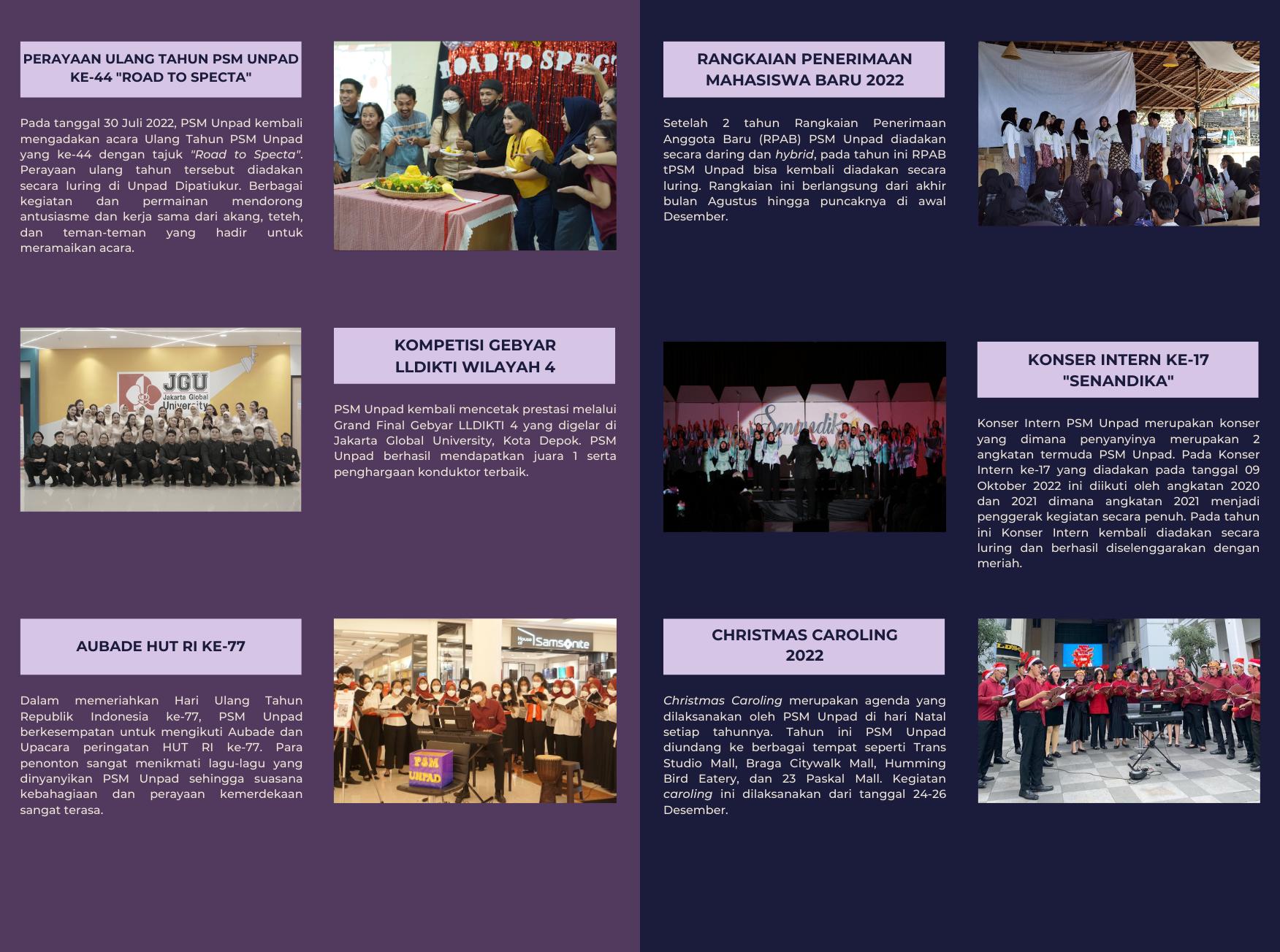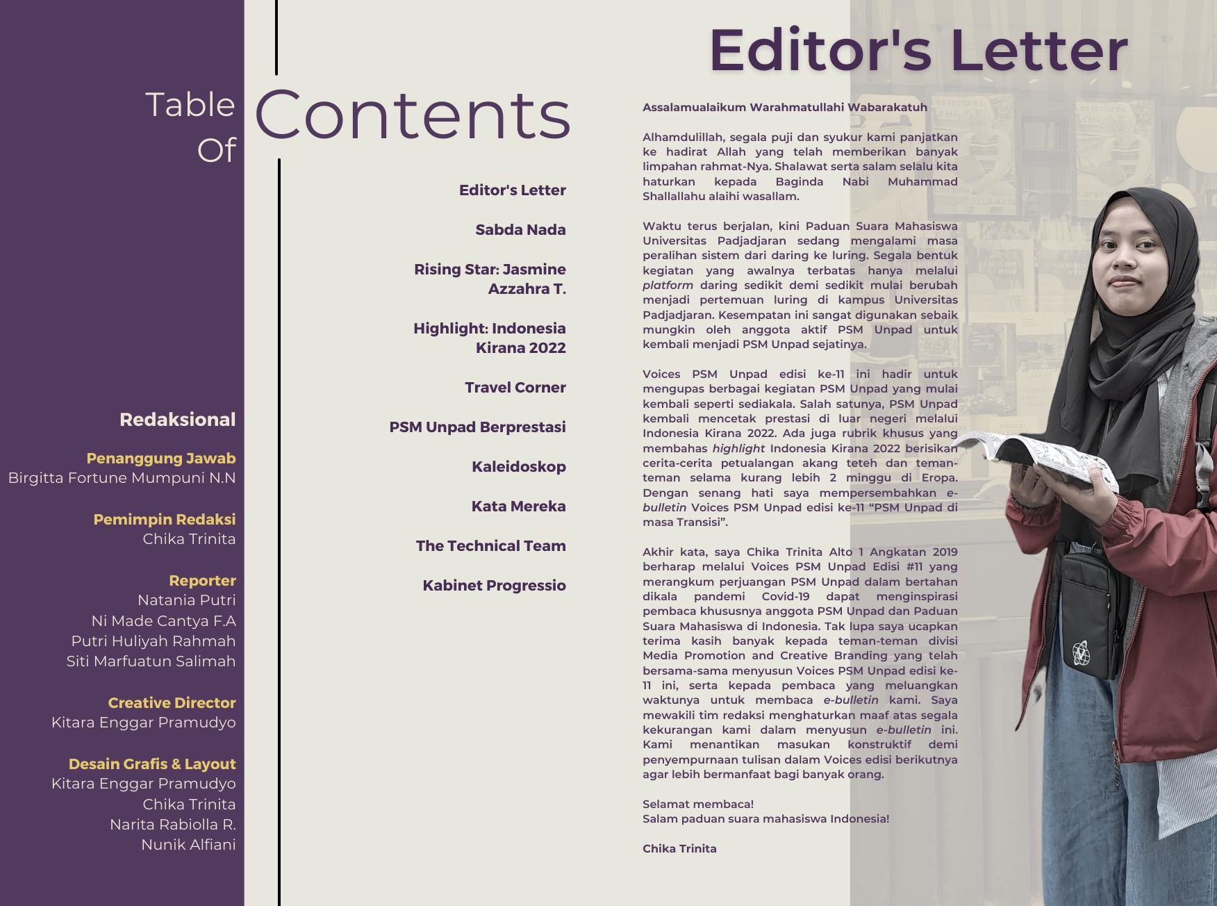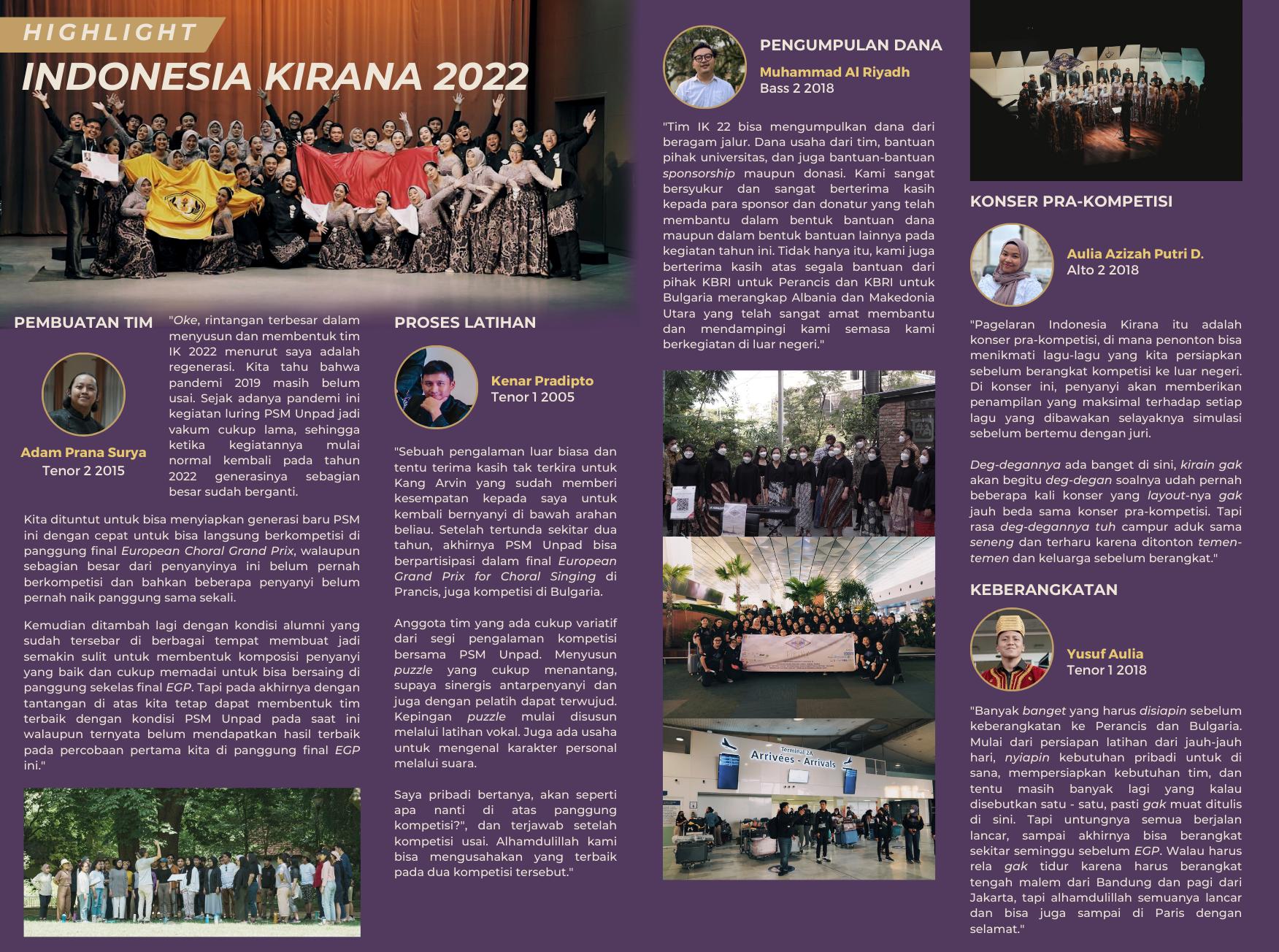 Memasuki awal tahun baru, VOICES hadir kembali untuk memberikan informasi dan ulasan menarik mengenai kegiatan dan prestasi PSM Unpad selama tahun 2022. Mari menilik kembali perjuangan tim "Indonesia Kirana 2022" dalam berkompetisi di Final European Grand Prix for Choral Singing 2022 dan The 11th International "Antonio Vivaldi" Choir Competition & Festival. Simak juga ulasan mengenai kegiatan PSM Unpad lainnya di tahun 2022. Selamat membaca!