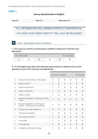 MYANMAR BUSINESS SURVEY: DATA ANALYSIS AND POLICY IMPLICATIONS