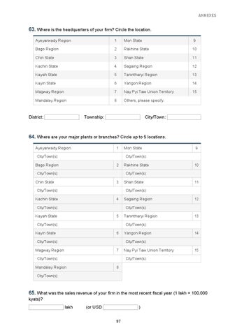 63. Where is the headquarters of your firm? Circle the location. Ayeyarwady Region