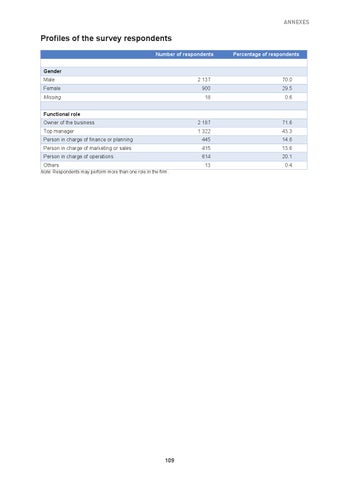 Profiles of the survey respondents Number of respondents