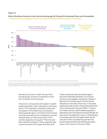 Figure 1.5 Ratio of the share of women to men of prime working age (20-59 years) in the poorest 20 per cent of households Women are more likely than men to live in the poorest households in 41 out of 75 countries