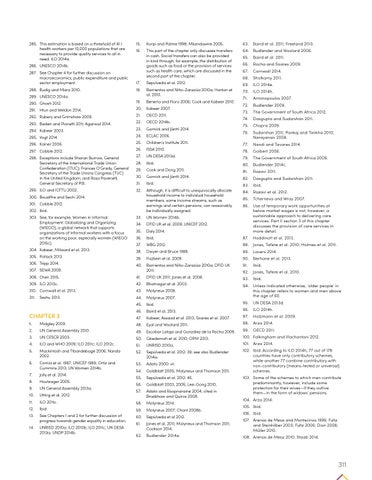 72. Budlender 2009. 73. The Government of South Africa 2012. 74. Dasgupta and Sudarshan 2011. 75. Chopra 2009. 76. Sudarshan 2011; Pankaj and Tankha 2010; Narayanan 2008. 77. Nandi and Tavares 2014. 78. Golbert 2006. 79. The Government of South Africa 2009. 80. Budlender 2014c. 81. Razavi 2011. 82. Dasgupta and Sudarshan 2011. 83. Ibid. 84. Razavi et al. 2012. 85. Tcherneva and Wray 2007.