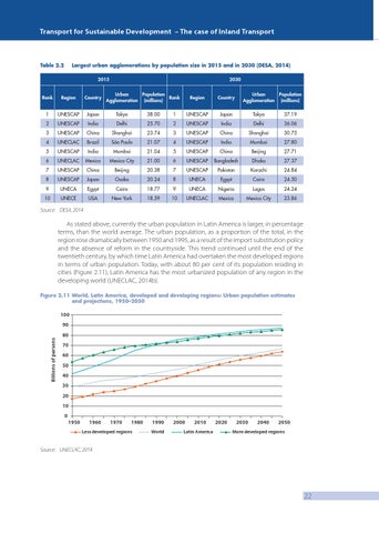 Largest urban agglomerations by population size in 2015 and in 2030 (DESA, 2014) 2015