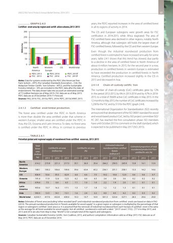 TABLE 2.4.1 Potential global and regional supply of roundwood from certified esources, 2013-2015 Estimated industrial roundwood from certified forests (million m³)