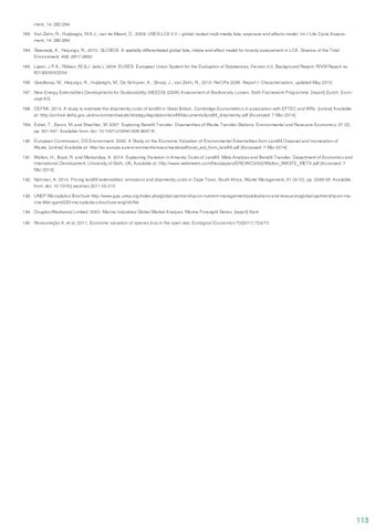ment, 14: 282-284 183. Van Zelm, R., Huijbregts, M.A.J., van de Meent, D., 2009. USES-LCA 2.0 – global nested multi-media fate, exposure and effects model. Int J Life Cycle Assessment, 14: 282-284 184. Sleeswijk, A., Heijungs, R., 2010. GLOBOX: A spatially differentiated global fate, intake and effect model for toxicity assessment in LCA. Science of the Total Environment, 408: 2817-2832 185. Lijzen, J.P.A., Rikken, M.G.J. (eds.), 2004. EUSES: European Union System for the Evaluation of Substances, Version 2.0, Background Report. RIVM Report no. 601900005/2004 186. Goedkoop, M., Heijungs, R., Huijbregts, M., De Schryver, A., Struijs, J., van Zelm, R., 2013. ReCiPe 2008. Report I: Characterisation, updated May 2013. 187. New Energy Externalities Developments for Sustainability (NEEDS) (2006) Assessment of Biodiversity Losses. Sixth Framework Programme. [report] Zurich: Econcept AG. 188. DEFRA. 2014. A study to estimate the disamenity costs of landfill in Great Britain. Cambridge Econometrics in association with EFTEC and WRc. [online] Available at: http://archive.defra.gov.uk/environment/waste/strategy/legislation/landfill/documents/landfill_disamenity.pdf [Accessed: 7 Mar 2014]. 189. Eshet, T., Baron, M. and Shechter, M. 2007. Exploring Benefit Transfer: Disamenities of Waste Transfer Stations. Environmental and Resource Economics, 37 (3), pp. 521-547. Available from: doi: 10.1007/s10640-006-9047-6. 190. European Commission, DG Environment. 2000. A Study on the Economic Valuation of Environmental Externalities from Landfill Disposal and Incineration of Waste. [online] Available at: http://ec.europa.eu/environment/enveco/waste/pdf/cowi_ext_from_landfill.pdf [Accessed: 7 Mar 2014]. 191. Walton, H., Boyd, R. and Markandya, A. 2014. Explaining Variation in Amenity Costs of Landfill: Meta-Analysis and Benefit Transfer. Department of Economics and International Development, University of Bath, UK, Available at: http://www.webmeets.com/files/papers/ERE/WC3/552/Walton_WASTE_META.pdf [Accessed: 7 Mar 2014]. 192. Nahman, A. 2014. Pricing landfill externalities: emissions and disamenity costs in Cape Town, South Africa. Waste Management, 31 (9-10), pp. 2046-56. Available from: doi: 10.1016/j.wasman.2011.05.015. 193. UNEP Microplatics Brochure http://www.gpa.unep.org/index.php/global-partnership-on-nutrient-management/publications-and-resources/global-partnership-on-marine-litter-gpml/233-microplastics-brochure-english/file 194. Douglas-Westwood Limited. 2005. Marine Industries Global Market Analysis. Marine Foresight Series. [report] Kent 195. Ressurreição A. et al, 2011, Economic valuation of species loss in the open sea, Ecological Economics 70(2011) 729-73