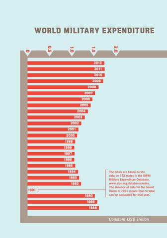 The totals are based on the data on 172 states in the SIPRI Military Expenditure Database, www.sipri.org/databases/milex. The absence of data for the Soviet Union in 1991 means that no total can be calculated for that year.