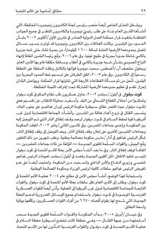 ويش�غل املمث�ل الخاص أيضا ً منصب رئي�س لجنة الكامريون ونيجريي�ا املختلطة ،التي يس نيجريي�ا والكامريون للنظ�ر يف جميع الجوانب أنش�أها األمين العام بن�ا ًء عىل طلب رئي ّ املتعلق�ة بتنفي�ذ قرار محكمة العدل الدولية الصادر يف ترشين األول/أكتوبر 2002بش�أن الح�دود بني البلدي�ن .وكانت العالقات بني الكامريون ونيجرييا قد توترت بس�بب مس�ائل تتصل بحدودهما األرضية املمتدة ملسافة 1 600كيلومرتاً ،من بحرية تشاد حتى شبه جزيرة باكايس شاملة حدودا ً بحرية يف خليج غينيا .ويف عام ،2006و ّقع رئيسا البلدين اتفاقا ً إلنهاء النزاع الحدودي بش�أن ش�به جزيرة باكايس يف أعقاب وس�اطة مكثفة قام بها األمني العام. وبحلول منتصف آب/أغسطس ،سحبت نيجرييا قواتها بالكامل ونقلت السلطة عىل املنطقة رس�ميا ً إىل الكامريون .ويف عام ،2007اتفق الطرفان عىل ترس�يم خط الحدود البحرية بني البلدين ،ل ُتحل من ثم مس�ألة القطاعات األربعة التي تناولها قرار املحكمة .ويواصل البَلَدان إحراز تقدم يف تعليم حدودهما األرضية املشرتكة تحت إرشاف اللجنة املختلطة. كوت ديفوار .يف أيلول/سبتمرب ،2002حاول عسكريون قلب نظام الحكم يف كوت ديفوار وتمكن�وا من احتالل القطاع الش�مايل من البلد .وأس�فرت محاولة االنقالب عن تقس�يم فعيل لك�وت ديفوار حيث اقترص نطاق س�يطرة حكومة الرئيس لوران غباغب�و عىل جنوب البالد. وتس�بب القتال يف نزوح أعداد هائلة من املرشدين .وأنش�أت الجماعة االقتصادية لدول غرب أفريقي�ا قوة لحفظ السلام يف ك�وت ديفوار لرصد وق�ف إطالق النار الذي ت�م التوصل إليه بني الحكوم�ة وإحدى جماعات املتمردين .ويف كان�ون الثاني/يناير ،2003اتفقت الحكومة وجماعات املتمردين األخرى عىل إعالن وقف إطالق النار .وبعد التوصل إىل وقف إلطالق النار، ّ شكل الرئيس غباغبو يف آذار/مارس حكومة مصالحة وطنية .وعقب شهرين من ذلك التطور و ّقع الجيش ،والقوات املس�لّحة للقوى الجدي�دة — املؤلفة من ثالث جماعات للمتمردين — اتفاق�ا ً لوقف إطالق النار .ويف ما بعد ،أنش�أ مجلس األمن بعثة األم�م املتحدة يف كوت ديفوار لتيسير تنفيذ االتفاق .لكن القوى الجديدة رفضت يف أيلول/سبتمرب تعيينات الرئيس غباغبو ملنصب�ي وزيري الدف�اع واألمن الداخيل وانس�حبت م�ن الحكومة .واحتجت أيض�ا ً عىل عدم تفويض الرئيس غباغبو سلطات كافية لرئيس الوزراء وحكومة املصالحة الوطنية. واس�تجابة لهذا الوضع ،أنش�أ مجلس األمن يف مطلع عام 2004عملي�ة األمم املتحدة يف كوت ديفوار ،وطلب إىل األمني العام نقل سلطات بعثة األمم املتحدة يف كوت ديفوار والقوات التابع�ة للجماع�ة االقتصادية لدول غرب أفريقيا إىل العملية ،وأذن أيضا ً للقوات العس�كرية الفرنس�ية املوج�ودة يف ك�وت ديفوار باس�تخدام جميع الوس�ائل الرضورية لدع�م البعثة الجديدة ،التي ُس�مح لها بقوام أقصاه 6 240من أفراد القوات العس�كريني ،وكلّفها بوالية واسعة النطاق. ويف نيس�ان/أبريل ،2005ب�دأت الحكوم�ة والق�وات املس�لّحة للقوى الجديدة س�حب أس�لحتهما م�ن جبهة القت�ال — وه�ي منطقة كانت تخضع لس�يطرة حفظة السلام يف عملي�ة األم�م املتح�دة يف كوت ديف�وار والقوات الفرنس�ية امل�أذون لها من األم�م املتحدة.
