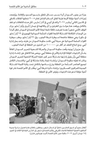 جزءًا من جنوب الس�ودان أم ال بس�بب مس�ائل تتعلق برتس�يم الح�دود واإلقامة .و ُوضعت إجراءات أمنية مؤقتة أقرها طرفا اتفاق السلام الشامل لعام 2005شملتها اتفاقات كادقيل يف كان�ون الثاني/يناي�ر 2011واتف�اق أبي�ي يف آذار/مارس .لكن ه�ذه االتفاقات لم تنفذ بالكامل ووقعت عدة حوادث بني الطرفني و/أو وكالئهما يف نيسان/أبريل وأيار/مايو .وزاد املوقف األمني تدهورا ً عندما تعرضت قافلة تابعة لبعثة األمم املتحدة يف السودان تنقل أفرادا ً من الوحدات املتكاملة املشتركة التابعة للقوات املسلّحة السودانية للهجوم يف 19أيار/مايو يف دكورا ،وهي منطقة خاضعة لس�يطرة رشطة الجنوب .ويف 21أيار/مايو ،وعقب سيطرة القوات املسلحة السودانية عىل مدينة أبيي ،قامت حكومة السودان من طرف واحد بحل إدارة أبيي .ومع اندالع العنف فر أكثر من 100 000من املدنيني من املنطقة يف اتجاه الجنوب. ويف حزيران/يونيه و ّقعت حكومة الس�ودان والحركة الش�عبية لتحرير الس�ودان اتفاقا ً بش�أن الرتتيبات املؤقتة لإلدارة واألمن يف منطقة أبيي .وينص هذا االتفاق عىل :إنش�اء إدارة ً مش�اركة مدير كبري تعيّنه الحركة الشعبية لتحرير السودان منطقة أبيي وأن يتوىل إدارتها ونائب له تعيّنه حكومة الس�ودان؛ وإنش�اء لجنة رقابة مشرتكة يف أبيي؛ واالنسحاب الكامل لجميع العنارص املس�لّحة من املنطقة ونزع سلاحها بالكامل تحت رقابة اللجنة املشتركة الجديدة للمراقبني العس�كريني؛ وإنشاء دائرة رشطة أبيي؛ ُ وطلب إىل األمم املتحدة نرش قوة أمنية مؤقتة لدعم هذه الرتتيبات وتوفري األمن يف املنطقة.