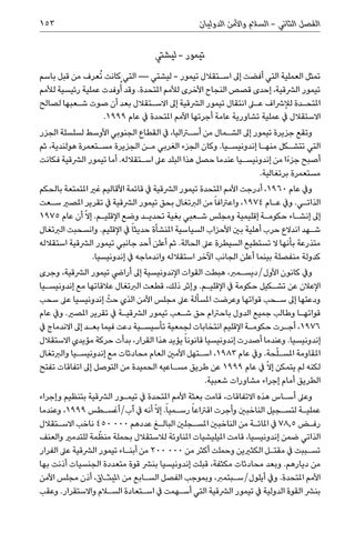 تيمور -ليشتي تمثل العملية التي أفضت إىل اس�تقالل تيمور -ليشتي — التي كانت ُتعرف من قبل باسم تيمور الرشقية ،إحدى قصص النجاح األخرى لألمم املتحدة .وقد أُوفدت عملية رئيسية لألمم املتح�دة لإلرشاف على انتقال تيمور الرشقية إىل االس�تقالل بعد أن صوت ش�عبها لصالح االستقالل يف عملية تشاورية عامة أجرتها األمم املتحدة يف عام .1999 وتقع جزيرة تيمور إىل الش�مال من أستراليا ،يف القطاع الجنوبي األوسط لسلسلة الجزر التي تتش�كل منه�ا إندونيس�يا .وكان الجزء الغربي م�ن الجزيرة مس�تعمرة هولندية ،ثم أصبح جزءًا من إندونيس�يا عندما حصل هذا البلد عىل اس�تقالله .أما تيمور الرشقية فكانت مستعمرة برتغالية. ويف عام ،1960أدرجت األمم املتحدة تيمور الرشقية يف قائمة األقاليم غري املتمتعة بالحكم الذات�ي .ويف ع�ام ،1974واعرتافا ً من الربتغال بحق تيمور الرشقية يف تقرير املصري س�عت إىل إنش�اء حكوم�ة إقليمية ومجلس ش�عبي بغية تحدي�د وضع اإلقلي�م .إال ّ أن عام 1975 ش�هد اندالع حرب أهلية بني األحزاب السياسية املنشأة حديثا ً يف اإلقليم .وانسحبت الربتغال متذرعة بأنها ال تستطيع السيطرة عىل الحالة .ثم أعلن أحد جانبي تيمور الرشقية استقالله كدولة منفصلة بينما أعلن الجانب اآلخر استقالله واندماجه يف إندونيسيا. ويف كانون األول/ديس�مرب ،هبطت القوات اإلندونيسية إىل أرايض تيمور الرشقية ،وجرى اإلعالن عن تش�كيل حكومة يف اإلقلي�م .وإثر ذلك ،قطعت الربتغال عالقاتها مع إندونيس�يا ودعتها إىل س�حب قواتها وعرضت املسألة عىل مجلس األمن الذي ّ حث إندونيسيا عىل سحب قواته�ا وطالب جميع الدول باحرتام حق ش�عب تيمور الرشقي�ة يف تقرير املصري .ويف عام ،1976أج�رت حكوم�ة اإلقليم انتخابات لجمعية تأسيس�ية دعت فيما بع�د إىل االندماج يف إندونيسيا .وعندما أصدرت إندونيسيا قانونا ً يؤيد هذا القرار ،بدأت حركة مؤيدي االستقالل املقاومة املس�لّحة .ويف عام ،1983اس�تهل األمني العام محادثات مع إندونيس�يا والربتغال لكنه لم يتمكن إالّ يف عام 1999عن طريق مس�اعيه الحميدة من التوصل إىل اتفاقات تفتح الطريق أمام إجراء مشاورات شعبية. وعىل أس�اس هذه االتفاقات ،قامت بعثة األمم املتحدة يف تيم�ور الرشقية بتنظيم وإجراء عملي�ة لتس�جيل الناخبني وأجرت اقرتاعا ً رس�مياً .إالّ أنه يف آب/أغس�طس ،1999وعندما رف�ض 78,5يف املائ�ة من الناخبني املس�جلني البال�غ عددهم 450 000ناخب االس�تقالل الذاتي ضمن إندونيسيا ،قامت امليليشيات املناوئة لالستقالل بحملة ّ منظمة للتدمري والعنف تس�ببت يف مقت�ل الكثريين وحملت أكثر من 200 000من أبن�اء تيمور الرشقية عىل الفرار من ديارهم .وبعد محادثات مكثفة ،قبلت إندونيسيا بنرش قوة متعددة الجنسيات أذنت بها األمم املتحدة .ويف أيلول/س�بتمرب ،وبموجب الفصل الس�ابع من امليث�اق ،أذن مجلس األمن بنرش القوة الدولية يف تيمور الرشقية التي أس�همت يف اس�تعادة السلام واالستقرار .وعقب