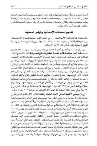 أحدث املعلومات بشأن حاالت الطوارئ يف كافة أنحاء العالم .ويستضيف أيضا ً موقع الشبكة اإلقليمي�ة املتكاملة للمعلوم�ات ( )http://arabic.irinnews.orgوه�و موقع للخدمة اإلعالمية يو ّف�ر معلومات دقيقة وتقارير وتحليالت محايدة بش�أن أفريقيا -جنوب الصحراء الكربى والرشق األوسط وآسيا واألمريكتني.