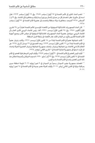 تغي 8انضم اتحاد املاليو إىل األمم املتحدة يف 17أيلول/سبتمرب .1957ويف 16أيلول/سبتمرب ،1963رّ اسمه إىل ماليزيا ،عقب انضمام كل من صباح (شمال بورنيو) وساراواك وسنغافورة إىل االتحاد .ويف 9آب/ أغسطس 1965أصبحت سنغافورة دولة مستقلة وانضمت إىل عضوية األمم املتحدة يف 21أيلول/سبتمرب .1965 ً 9كان اتحاد الجمهوريات االشرتاكية السوفيتية من األعضاء املؤسسني لألمم املتحدة اعتبارا من 24ترشين