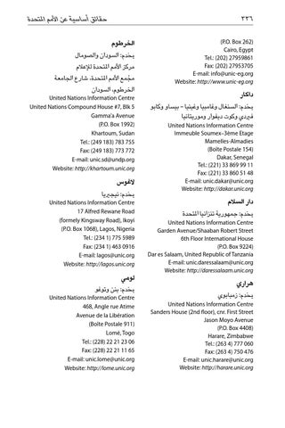 United Nations Information Centre Immeuble Soumex–3ème Etage Mamelles-Almadies )Boîte Postale 154( Dakar, Senegal Tel.: (221) 33 869 99 11 Fax: (221) 33 860 51 48 E-mail: unic.dakar@unic.org Website: http://dakar.unic.org