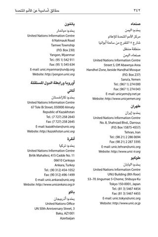United Nations Information Centre Street 5, Off Abawnya Area Handhel Zone, beside Handhal Mosque )P.O. Box 237( Sana’a, Yemen Tel.: (967 1) 274 000 Fax: (967 1) 274 043 E-mail: unicyem@y.net.ye Website: http://www.unicyemen.org