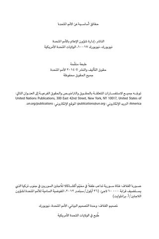 صـورة الغالف :فتاة س�ورية تداعب طفالً يف مخيّم أكش�اكاال للاّ جئني السوريني يف جنوب تركيا الذي يس�تضيف قرابة 10 000الجئ 26( .أيلول/سبتمرب ،2012املفوضية السامية لألمم املتحدة لشؤون الالجئني/أ .برانثوايت) تصميم الغالف :وحدة التصميم البياني ،األمم املتحدة ،نيويورك ُطبع يف الواليات املتحدة األمريكية