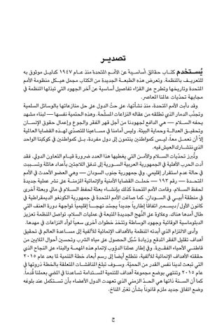 يُس�تخدم كت�اب حقائق أساس�ية عن األم�م املتحدة منذ ع�ام 1947كدلي�ل موثوق به للتعري�ف باملنظمة .وتعرض هذه الطبع�ة الجديدة من الكتاب مجمل هي�كل منظومة األمم املتحدة وتاريخها وتطرح عىل الق ّراء تفاصيل أساسية عن آخر الجهود التي تبذلها املنظمة يف مجابهة تحدّيات عاملنا املعارص. وقد دأبت األمم املتحدة ،منذ نشأتها ،عىل ّ حث الدول عىل حل منازعاتها بالوسائل السلمية وتجنّب الدمار الذي تطلقه من عقاله النزاعات املسلّحة .وهذه الحتمية نفسها — لبناء مشهد يحفه السلام — هي الدافع لجهودنا من أجل قهر الفقر والجوع وإعمال حقوق اإلنس�ان وتحقي�ق العدال�ة وحماية البيئة .وليس أمامنا يف مس�اعينا للتصدّي له�ذه القضايا العاملية إال ّ أن نعم�ل معاً ،لي�س كمواطنني ينتمون إىل دول مفردة ،ب�ل كمواطنني يف كوكبنا الواحد الذي نتش�ارك العيش فيه. و ُتربز تحدّيات السلام واألم�ن التي يغطيها هذا العدد رضورة قي�ام التعاون الدويل .فقد أدت الحرب األهلية يف الجمهورية العربية الس�ورية إىل تدفق الالجئني بأعداد هائلة وتس�ببت يف حالة عدم استقرار إقليمي .ويف جمهورية جنوب السودان — وهي العضو األحدث يف األمم املتح�دة — رقم َ — 193حمل�ت القضايا األمنية واإلنمائية املزمن�ة عىل نرش عملية جديدة لحفظ السلام .وقامت األمم املتحدة كذلك بإنش�اء بعثة لحفظ السلام يف مايل وبعثة أخرى يف منطقة أبيـي يف الس�ودان .كما صاغت األمم املتحدة يف جمهورية الكونغو الديمقراطية يف يجسد نهجــا ً إقليميا ً ملواجهة دورة العنف التي كانون األول/ديس�مرب اتفاقا ً إطاريا ً جديدا ً ّ طال أمدها هناك .وعالوة عىل ال ُنهج الجديدة املتبعة يف عمليات السالم ،تواصل املنظمة تعزيز الدبلوماسية الوقائية وجهود الوساطة وتتخذ خطوات أخرى سعيا ً لوأد النزاعات يف مهدها. وأدى االلتزام الذي أبدته املنظمة باألهداف اإلنمائية لأللفية إىل مس�اعدة العالم يف تحقيق أهداف تقليل الفقر املدقع وزيادة ُس ُبل الحصول عىل مياه الرشب وتحسني أحوال املاليني من قاطن�ي األحياء الفقيرة .ويف إطار عملنا الدؤوب إلتمام هذه املهم�ة والبناء عىل النجاح الذي حققته األهداف اإلنمائية لأللفية ،نتطلع أيضا ً إىل رسم أبعاد خطة التنمية ملا بعد عام 2015 التي تبعث لدينا نفس القدر من الحميّة .وس�وف تبلغ املناقش�ات املتعلقة بالخطة ذروتها يف عام 2015وتنتهي بوضع مجموعة أهداف للتنمية املس�تدامة تساعدنا يف امليض بعملنا ُقدماً. كما أن الس�نة ذاتها هي الح� ّد الزمني الذي تعهدت الدول األعضاء بأن تس�تكمل عند بلوغه وضع اتفاق جديد ملزم قانونا ً بشأن تغيرّ املناخ.