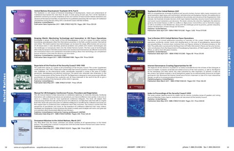 This Review is an annual publication providing an overview of the current United Nations peace operations worldwide, newest trends and developments in the area of peacekeeping, peacemaking and peacebuilding. It contains basic statistical facts and figures relating to UN peace presence in the field. The publication is produced by the Department of Public Information's Peace and Security Section, with contributions from the Departments of Peacekeeping Operations, of Field Support and of Political Affairs, as well as from UN peace missions.