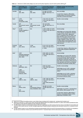 Table 2.2: 22Emissions in 2020 under pledge case and current policy trajectory cases for G20 countries (MtCO2e)2324252627 Parties