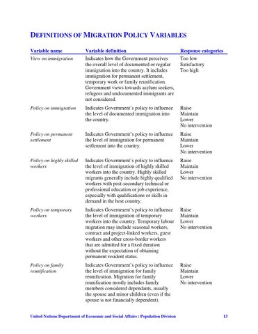 DEFINITIONS OF MIGRATION POLICY VARIABLES Variable name