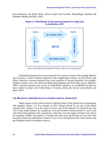 from Indonesia; and South Africa attracts people from Lesotho, Mozambique, Namibia and Zimbabwe (Ratha and Shaw, 2007). Figure 1.1. Distribution of international migrants by origin and by destination, 2013