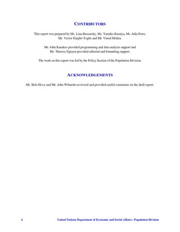 CONTRIBUTORS This report was prepared by Ms. Lina Bassarsky, Ms. Yumiko Kamiya, Ms. Julia Ferre, Mr. Victor Gaigbe-Togbe and Mr. Vinod Mishra. Mr. John Kanakos provided programming and data analysis support and Ms. Theresa Nguyen provided editorial and formatting support. The work on this report was led by the Policy Section of the Population Division.