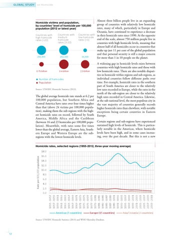 Homicide rates, selected regions (1955-2012, three-year moving average)