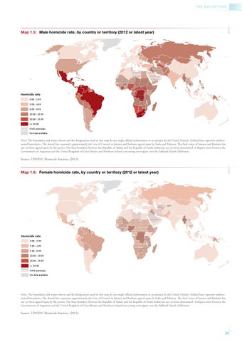 Map 1.5: Male homicide rate, by country or territory (2012 or latest year)