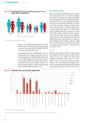 Fig. 1.13: Homicide rates of males and females aged 0-14, by region (2012 or latest year)