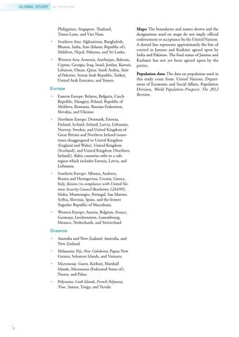 Maps: The boundaries and names shown and the designations used on maps do not imply official endorsement or acceptance by the United Nations. A dotted line represents approximately the line of control in Jammu and Kashmir agreed upon by India and Pakistan. The final status of Jammu and Kashmir has not yet been agreed upon by the parties. Population data: The data on population used in this study come from: United Nations, Department of Economic and Social Affairs, Population Division, World Population Prospects: The 2012 Revision.