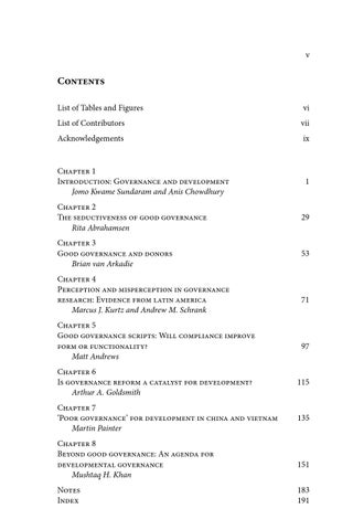 Chapter 4 Perception and misperception in governance research: Evidence from latin america Marcus J. Kurtz and Andrew M. Schrank Chapter 5 Good governance scripts: Will compliance improve form or functionality? Matt Andrews