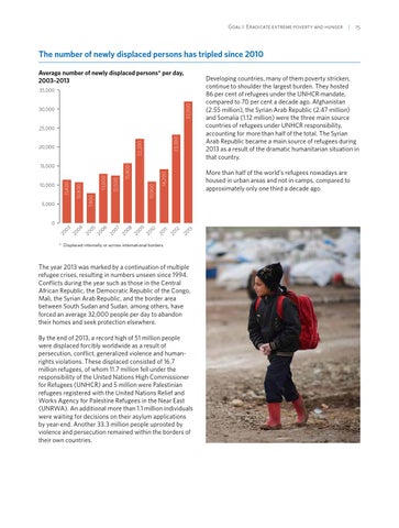 The number of newly displaced persons has tripled since 2010 Average number of newly displaced persons* per day, 2003–2013