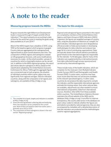 The complete list of goals, targets and indicators is available at http://mdgs.un.org. 2 Given the time lag between collecting data and analysing them, few indicators can be compiled for the current year. Most of them are based on data from earlier years— generally up to 2012 or 2013. 3 The composition of these subregions is shown in the next section “Regional groupings”.