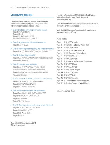 Contributing agencies Contributions on data and analysis for each target presented under the eight goals were provided by individual agencies as indicated below: