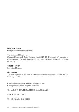 Editorial team George Martine and Daniel Schensul This book should be cited as: Martine, George and Daniel Schensul (eds.) 2013. The Demography of Adaptation to Climate Change. New York, London and Mexico City: UNFPA, IIED and El Colegio de México. coordination José Miguel Guzmán DISCLAIMER The views expressed in this book do not necessarily represent those of UNFPA, IIED or El Colegio de México.
