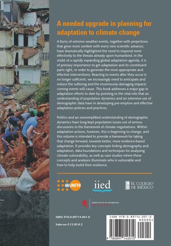A needed upgrade in planning for adaptation to climate change A flurry of extreme weather events, together with projections that grow more somber with every new scientific advance, have dramatically highlighted the need to respond more effectively to the threats already upon humankind. In the midst of a rapidly expanding global adaptation agenda, it is of primary importance to get adaptation and its constituent parts right, in order to generate the most appropriate and effective interventions. Reacting to events after they occur is no longer sufficient; we increasingly need to anticipate and reduce the suffering and the enormously damaging impacts coming events will cause. This book addresses a major gap in adaptation efforts to date by pointing to the vital role that an understanding of population dynamics and an extensive use of demographic data have in developing pre-emptive and effective adaptation policies and practices. Politics and an oversimplified understanding of demographic dynamics have long kept population issues out of serious discussions in the framework of climate negotiations. Within adaptation actions, however, this is beginning to change, and this volume is intended to provide a framework for taking that change forward, towards better, more evidence-based adaptation. It provides key concepts linking demography and adaptation, data foundations and techniques for analyzing climate vulnerability, as well as case studies where these concepts and analyses illuminate who is vulnerable and how to help build their resilience.