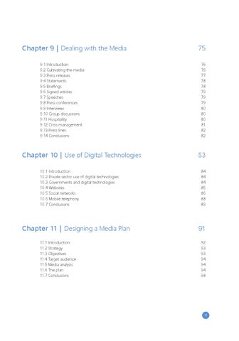 Chapter 9 | Dealing with the Media 9.1 Introduction 9.2 Cultivating the media 9.3 Press releases 9.4 Statements 9.5 Briefings 9.6 Signed articles 9.7 Speeches 9.8 Press conferences 9.9 Interviews 9.10 Group discussions 9.11 Hospitality 9.12 Crisis management 9.13 Press lines 9.14 Conclusions
