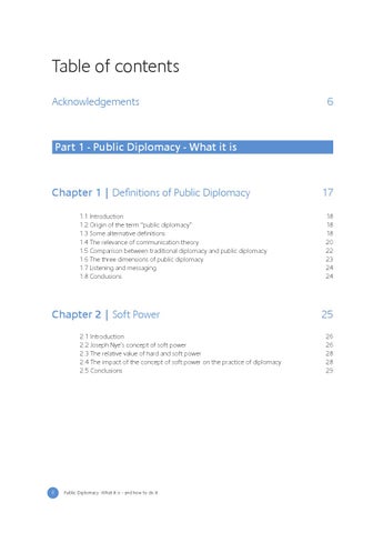 Chapter 1 | De÷nitions of Public Diplomacy 1.1 Introduction 1.2 Origin of the term Úpublic diplomacyÛ 1.3 Some alternative definitions 1.4 The relevance of communication theory 1.5 Comparison between traditional diplomacy and public diplomacy 1.6 The three dimensions of public diplomacy 1.7 Listening and messaging 1.8 Conclusions
