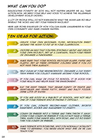 Ten ideas for action: Create your own brochure, flyer, information sheet 1. around the MDGs to put up in your classroom.