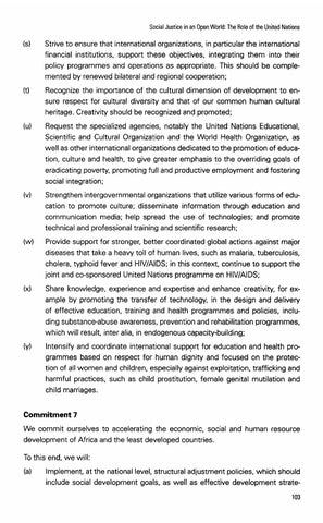 Commitment 7 We commit ourselves to accelerating the economic, social and human resource development of Africa and the least developed countries. To this end, we will: (a)