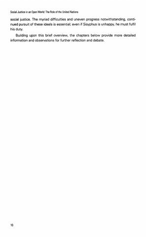 social justice. The myriad difficulties and uneven progress notwithstanding, continued pursuit of these ideals is essential; even if Sisyphus is unhappy, he must fulfil his duty. Building upon this brief overview, the chapters below provide more detailed information and observations for further reflection and debate.