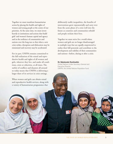 deliberately tackle inequalities, the benefits of interventions grow exponentially and carry over from the acute phase of a crisis well into the future as countries and communities rebuild and people reclaim their lives. Together we must strive for a world where women and girls are no longer disadvantaged in multiple ways but are equally empowered to realize their full potential, and contribute to the development and stability of their communities and nations—before, during or after a crisis.