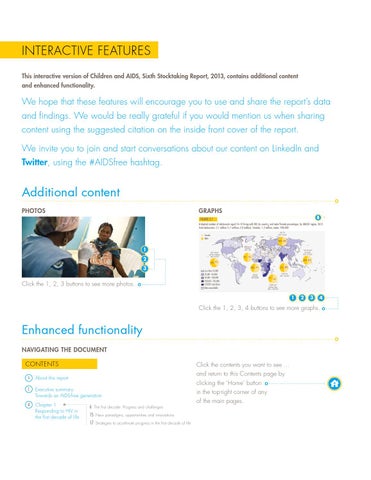 INTERACTIVE FEATURES This interactive version of Children and AIDS, Sixth Stocktaking Report, 2013, contains additional content and enhanced functionality.
