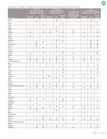 Testing % of higher-risk populations (aged below 25) who received an HIV test and knew their result, 2007–2012* People who inject drugs