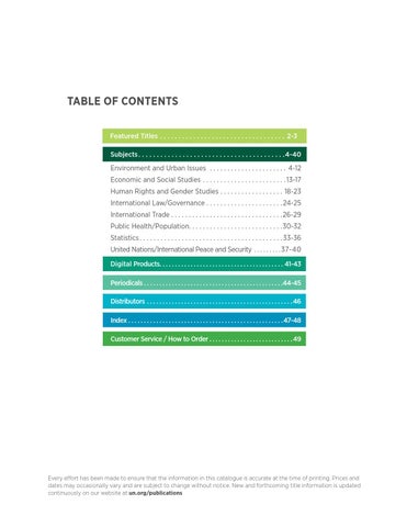 Every effort has been made to ensure that the information in this catalogue is accurate at the time of printing. Prices and dates may occasionally vary and are subject to change without notice. New and forthcoming title information is updated continuously on our website at un.org/publications