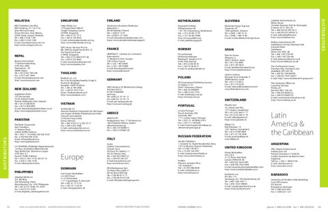 UNITED KINGDOM Dandy Booksellers Unit 3 & 4 31-33 Priory Park Road London NW67UP, UK Tel: + (44) 020 7624 2993 Fax: + (44) 020 7624 5049 E-mail: enquiries@dandybooksellers.com http://www.dandybooksellers.com Earthprint Ltd. P.O. Box 119 Stevenage SG1 2YA Hertfordshire, UK Tel: + (44) 1438 748111 Fax: + (44) 1438 748844 E-mail: unpubs@earthprint.co.uk http://www.earthprint.com