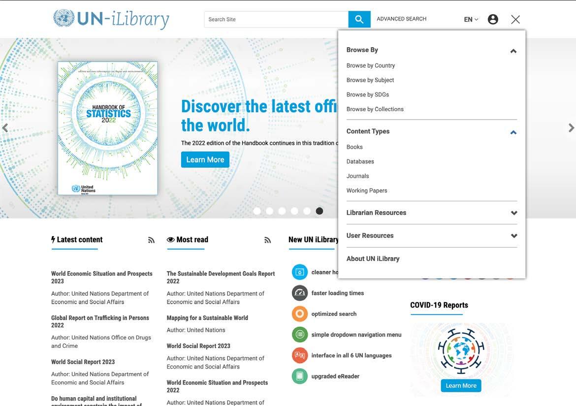 The United Nations iLibrary is an online, subscription-based platform that provides comprehensive search tools along with a user-friendly interface that allows users to access a vast collection of books, reports, and journals created by the United Nations (UN)—all in one place.