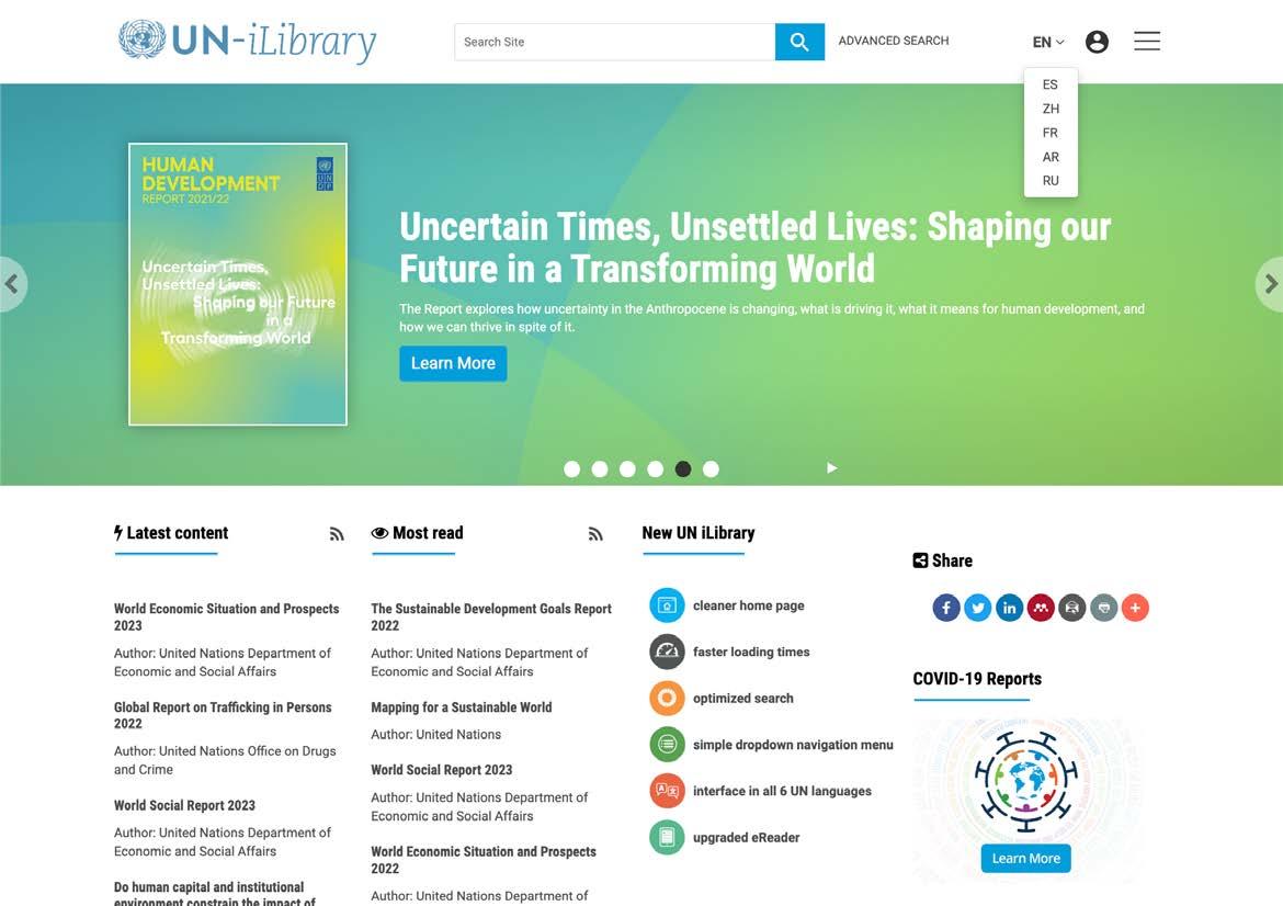 Multilingual interface: choose among the six UN languages to access the iLibrary in the language of your choice.