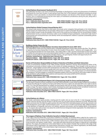 In the wake of the First World War, at the Peace Conference at Versailles, US President Wilson called for the creation of a League of Nations for the purpose of affording mutual guarantees of political independence and territorial integrity to great and small nations alike. For the first time, conflicts between nations were a matter of global concern. Numerous key areas – social, economic and statistics, health, labour – were dealt with either directly by the League or indirectly by its specialized agencies. The League, the predecessor to the United Nations saw the creation of bodies that would be at the origin of the International Labour Organization, the United Nations Educational, Scientific and Cultural Organization, the World Health Organization and the Office of the United Nations High Commissioner of Refugees. Publisher: United Nations Publication Date: December 2012 ISBN: 9789211012484 Pages: 160 Price: $22.00 28