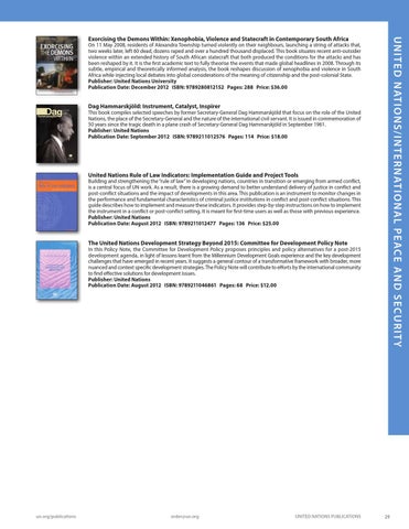 This book compiles selected speeches by former Secretary-General Dag Hammarskjöld that focus on the role of the United Nations, the place of the Secretary-General and the nature of the international civil servant. It is issued in commemoration of 50 years since the tragic death in a plane crash of Secretary-General Dag Hammarskjöld in September 1961. Publisher: United Nations Publication Date: September 2012 ISBN: 9789211012576 Pages: 114 Price: $18.00