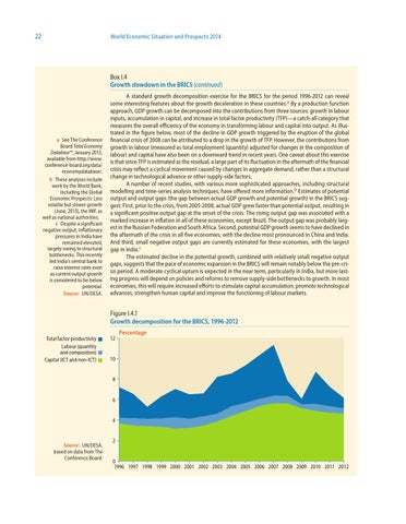 a See The Conference Board Total Economy Database™, January 2013, available from http://www. conference-board.org/data/ economydatabase/. b These analyses include work by the World Bank, including the Global Economic Prospects: Less volatile but slower growth (June, 2013), the IMF, as well as national authorities. c Despite a significant negative output, inflationary pressures in India have remained elevated, largely owing to structural bottlenecks. This recently led India’s central bank to raise interest rates even as current output growth is considered to be below potential. Source: UN/DESA.